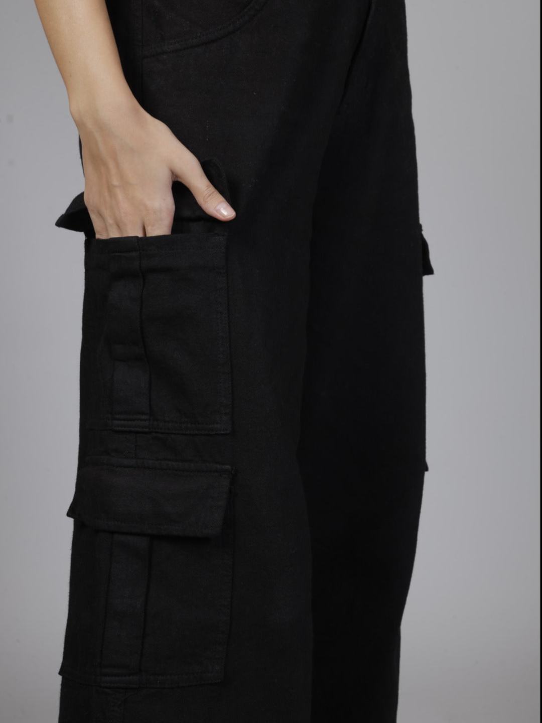 Black Multipocketed wide leg cargo
